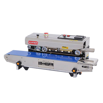 The horizontal continuous sealing machine adopts the electronic constant temperature automatic conveying device, which can manufacture plastic film bags of various switches, and can be applied in various packaging lines, and the sealing length is not limited; the sealing efficiency is high, the sealing quality is reliable, and the structure Reasonable and easy to operate.